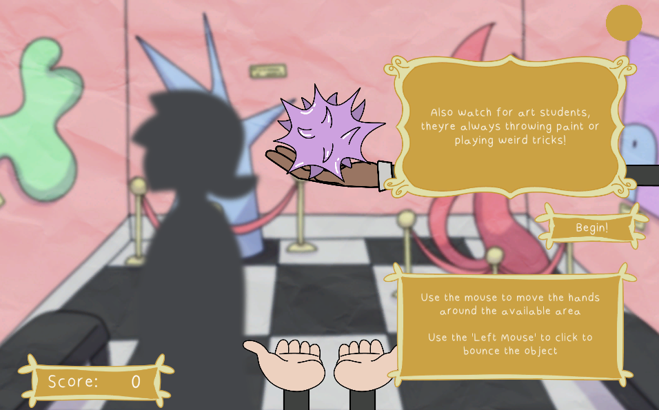 You're an underpaid art intern tasked with keeping a piece of art from breaking...the trouble is the art is very spiky so holding it is out of the question!